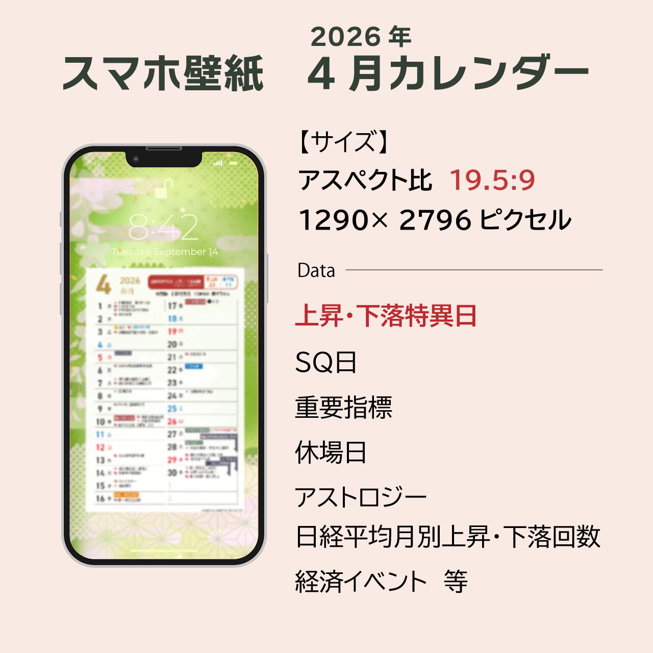 2026年 4月スマホ壁紙カレンダー【アスペクト比19.5:9】